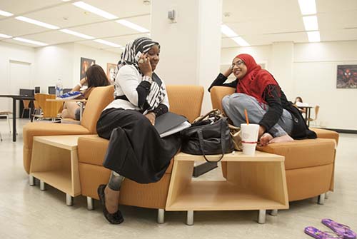 Cal State Fullerton students chill in the library in between classes on the first day of school, spring 2012.